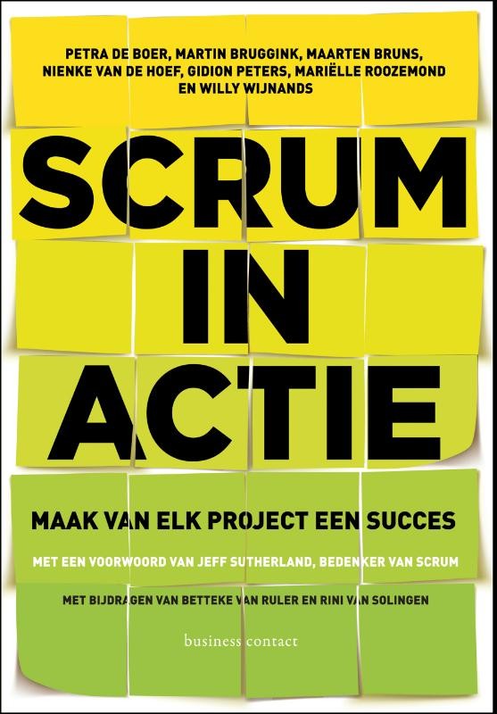 Het boek ‘Scrum in actie’ gaat over dé in rap tempo de wereld veroverende, slimme en innovatieve methode om met teams aan projecten te werken: Scrummen. Marketeers, ambtenaren, productontwikkelaars, zorgverleners, ingenieurs, leraren – ze gebruiken allemaal Scrum om sneller resultaat te boeken. Maar wat maakt deze eigenlijk verrassend simpele aanpak zo aantrekkelijk? ‘Scrum in actie’ legt precies uit hoe Scrum werkt en geeft antwoord op alle praktische vragen. Het boek barst van de aansprekende cases en praktijkvoorbeelden. Die maken zichtbaar hoe dankzij Scrum op een radicaal andere manier en met meer plezier wordt samengewerkt. Dit unieke boek over Scrum is geschikt voor alle sectoren – bedrijfsleven, overheid, onderwijs en maatschappelijke organisaties – en is zelf ook scrummend tot stand gekomen. Maar liefst zeven auteurs schreven mee aan dit boek. Stuk voor stuk ervaren scrumcoaches die samen het collectief NovaScrum vormen. Een voorwoord van de bedenker van Scrum, Jeff Sutherland, en bijdragen van Scrum-ambassadeurs prof. Betteke van Ruler en prof. Rini van Solingen maken dit boek compleet. Laat je inspireren en ontdek hoe je samen met je team grenzen verlegt.